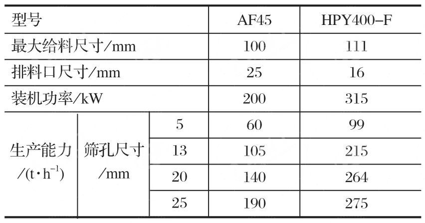 云南某銅礦 2017 年進(jìn)行項(xiàng)目技術(shù)改造,將原來的 AF45 單缸液壓圓錐破碎機(jī)更換為 HPY400-F 多缸液壓圓錐破碎機(jī),處理銅礦 3 200 t/d,設(shè)備每天運(yùn)行 16 h,-8 mm 成品產(chǎn)量為 200 t/d,綜合破磨浮選系統(tǒng),磨礦耗電 15 kW·h/t。系統(tǒng)改造后,電耗降低16%,效益明顯提升。多缸液壓圓錐破碎機(jī)和單缸液壓圓錐破碎機(jī)的參數(shù)對(duì)比如表 2 所列。
