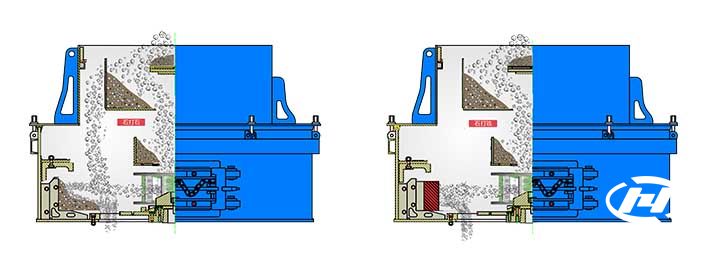 1)轉子中的拋料頭尖塊磨損板的不均勻磨損(偏上或偏下) 大都是由于料板的角度不合理引起的;有時是由于破碎積料過多造成的。