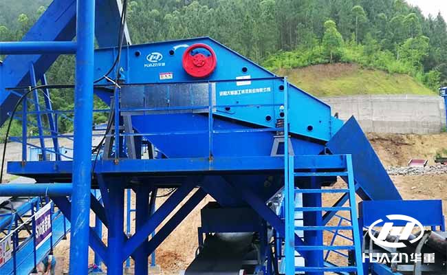 花崗巖生產線所用的花崗巖先經振動給料機均勻送入顎式破碎機,進行粗破碎作業,再送入圓錐破碎機進行石料的二次破碎。通過振動篩進行篩分,不符合要求的物料顆粒再次經過破碎機繼續破碎,最后用制砂機制砂。最后得到滿足要求的物料顆粒。