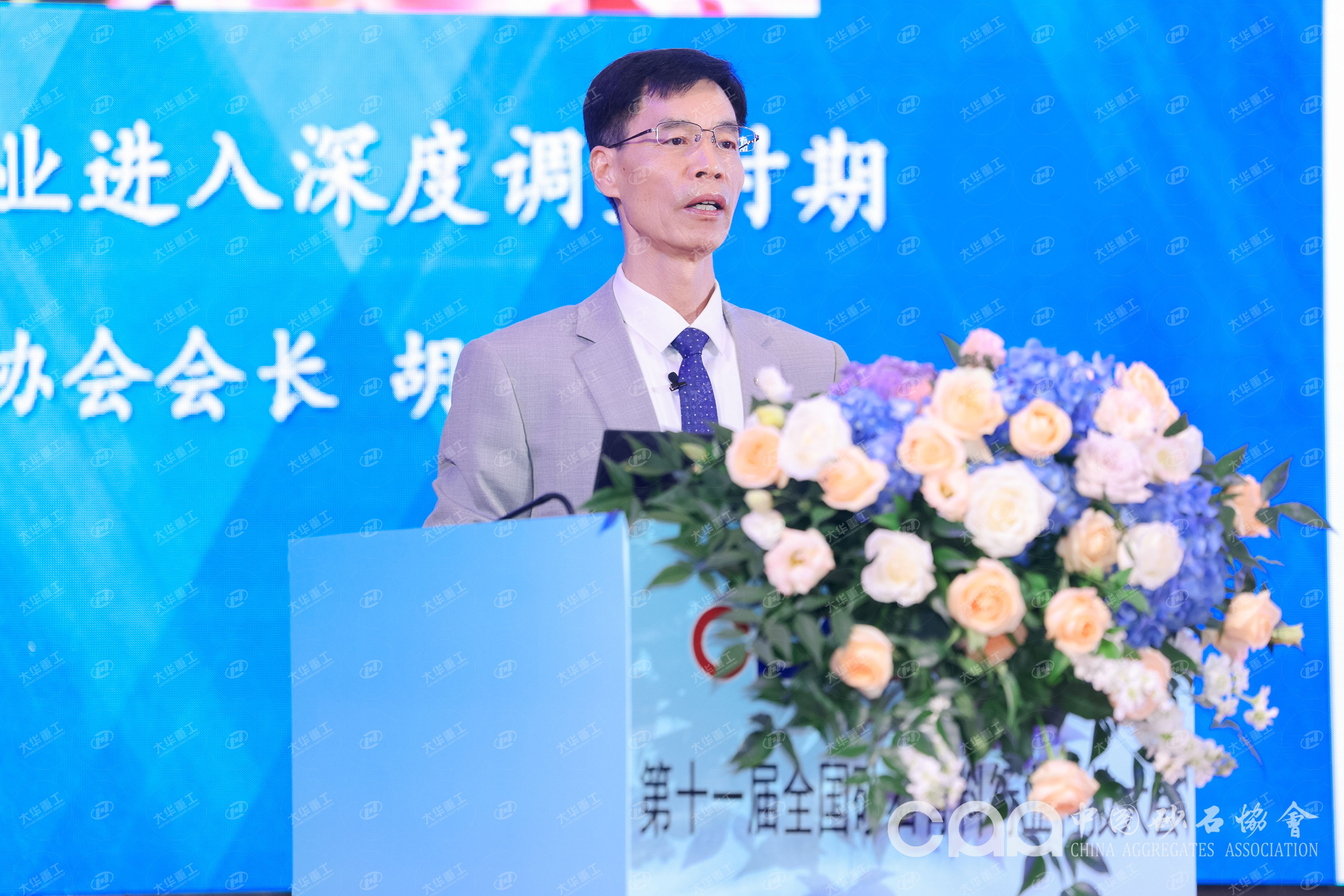 大會現場,中國砂石協會會長胡幼奕作了題為《砂石及裝備產業進入深度調整時期》的主旨報告。