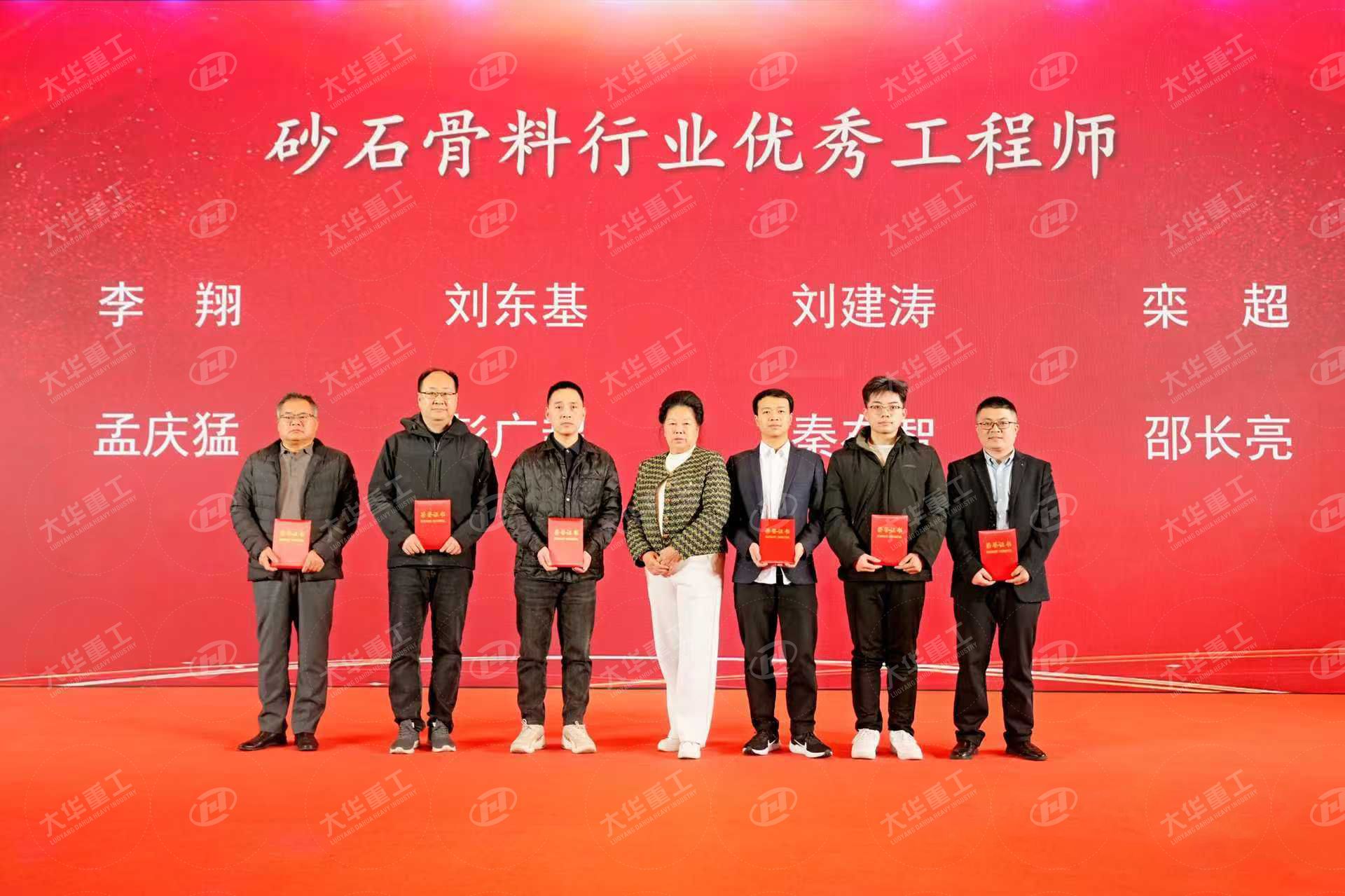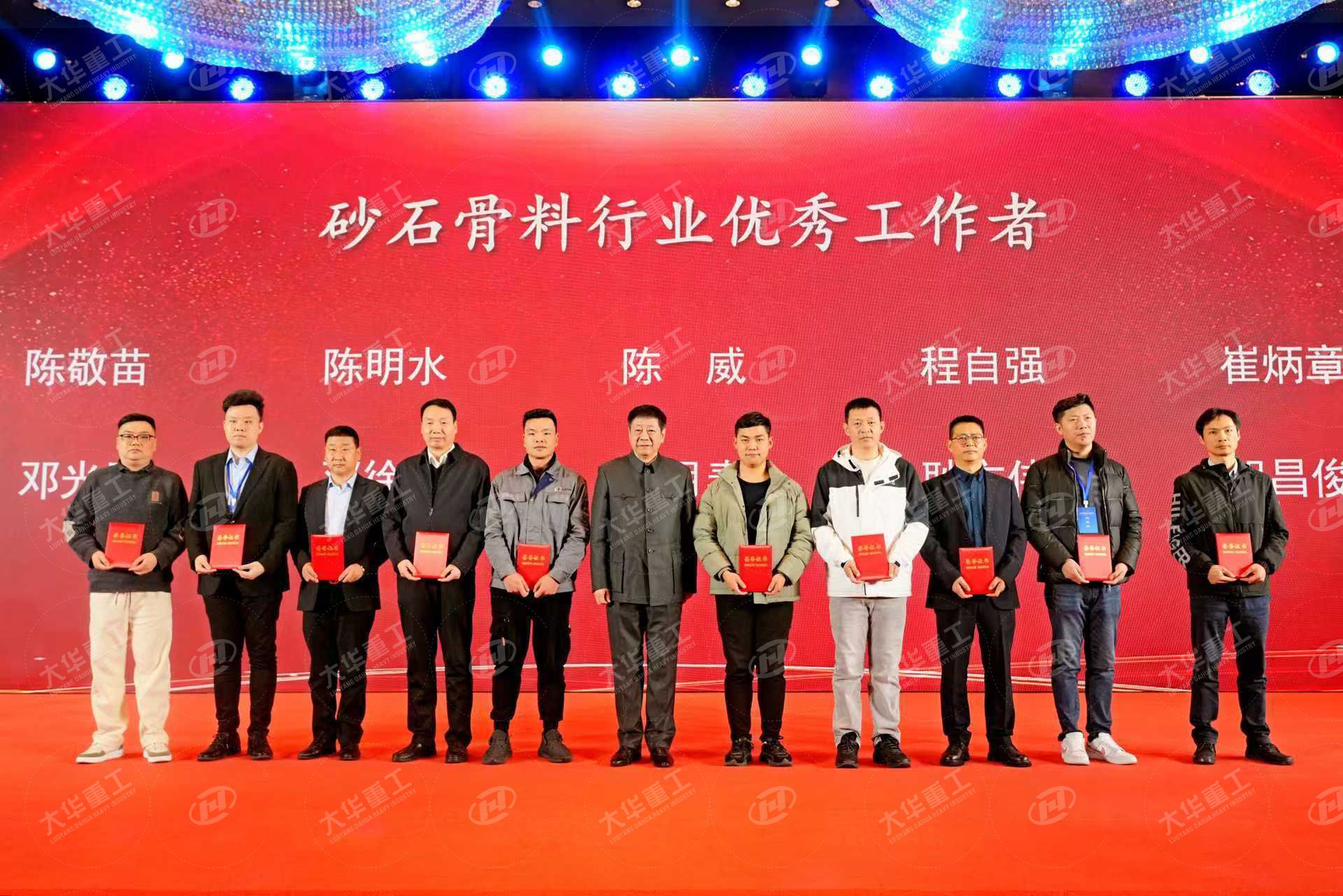 洛陽大華重工受邀出席此次盛會,并榮獲多項殊榮。公司榮獲“創新企業”獎與“優秀供應商”獎,董事長苗三周獲砂石行業“突出貢獻獎”,副董事長程自強榮獲“優秀工作者”獎,秦在智榮獲“優秀工程師”獎。