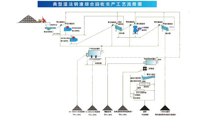 針對各鋼鐵企業的特點,公司分別研制出了干法和濕法兩種鋼渣高效綜合回收利用生產工藝和成套設備,其生產能力達30~200萬噸/年,可供廣大鋼渣處理廠選擇,使鋼渣得到高效綜合利用實現零排放,為鋼鐵企業實現循環發展,建設節約型企業提供成套高效節能工藝和設備保障。