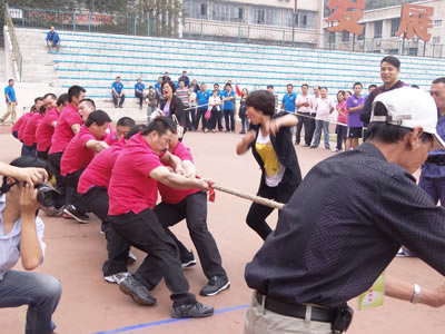 拔河比賽分兩次晉級(jí)賽和最終的決賽,共有包括中信重機(jī)、中國一拖、洛龍區(qū)代表隊(duì)在內(nèi)的12個(gè)隊(duì)伍參加了其中的拔河比賽項(xiàng)目。半個(gè)月前,我司工會(huì)主席黃麗華為公司獲得了直接參加二次晉級(jí)賽的權(quán)利;在20日上午的晉級(jí)賽中,我司15名參賽選手團(tuán)結(jié)一心,以2:0戰(zhàn)勝大唐熱電,獲得爭奪前四名的權(quán)利;20日下午,我司與中信重工爭奪晉級(jí)前兩名的權(quán)利,但由于力量懸殊過大,以0:2比分無緣前兩名;在21日上午的最終決賽中,我司抱著第三名志在必得的決心,齊心合力、眾志成城,最終以2:0戰(zhàn)勝澗西區(qū)代表隊(duì),獲得了拔河比賽第三名的優(yōu)異成績。