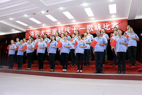 在抗戰勝利70周年紀念之際,我們又迎來了建國66周年。為慶祝這一特殊的節日。我洛陽大華重機公司特舉辦了2015年“慶十一”歌詠比賽。9月30日下午,全體員工歡聚一堂,再次用歌聲唱響旋律,用歌聲喚醒記憶,用歌聲表達我們對祖國深深的愛意。忠誠于黨,就是要堅決聽黨指揮。熱愛人民,就是要全心全意的為人民服務,為建設富強、民主、文明、和諧的社會主義現代化國家貢獻力量。