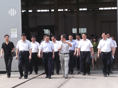 苗董事長及公司領導陪同李副省長(前排中間)視察車間
