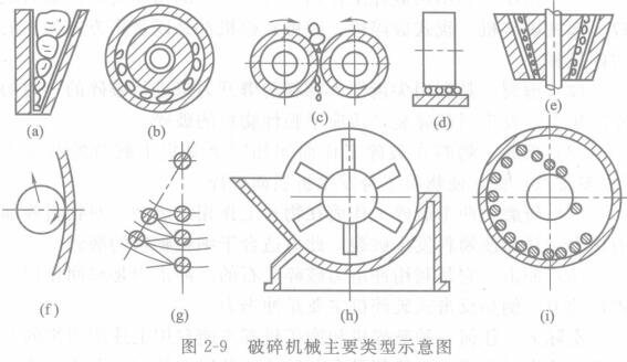 (2)根據破碎方式、機械的構造特征(動作原理)來劃分,將破碎機械大體分為六類,如圖2-9所示。