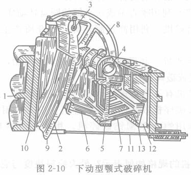 下動型顎式破碎機在選礦廠用得最多。其結構如圖2-10所示。