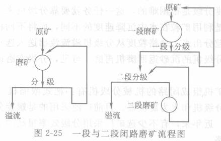 圖2-25為選廠常用的一段與二段閉路磨礦流程。